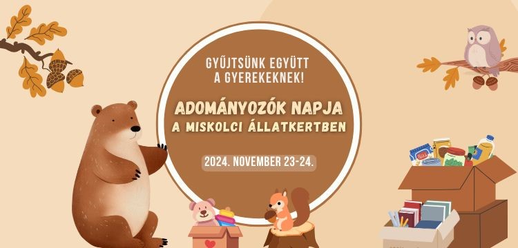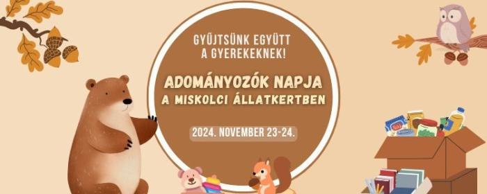 A Miskolci Állatkert és a Miskolci Egyesített Szociális, Egészségügyi és Gyerekjóléti Intézmény immár második alkalommal szervezi meg közösen összefogva az Adományozók napját 2024. november 23-án és november 24-én az állatkertben. Az összegyűjtött adományokat a Gyermekjóléti Szolgáltatás munkatársai veszik át, és ők juttatják el a rászoruló gyermekeknek és családjuknak.