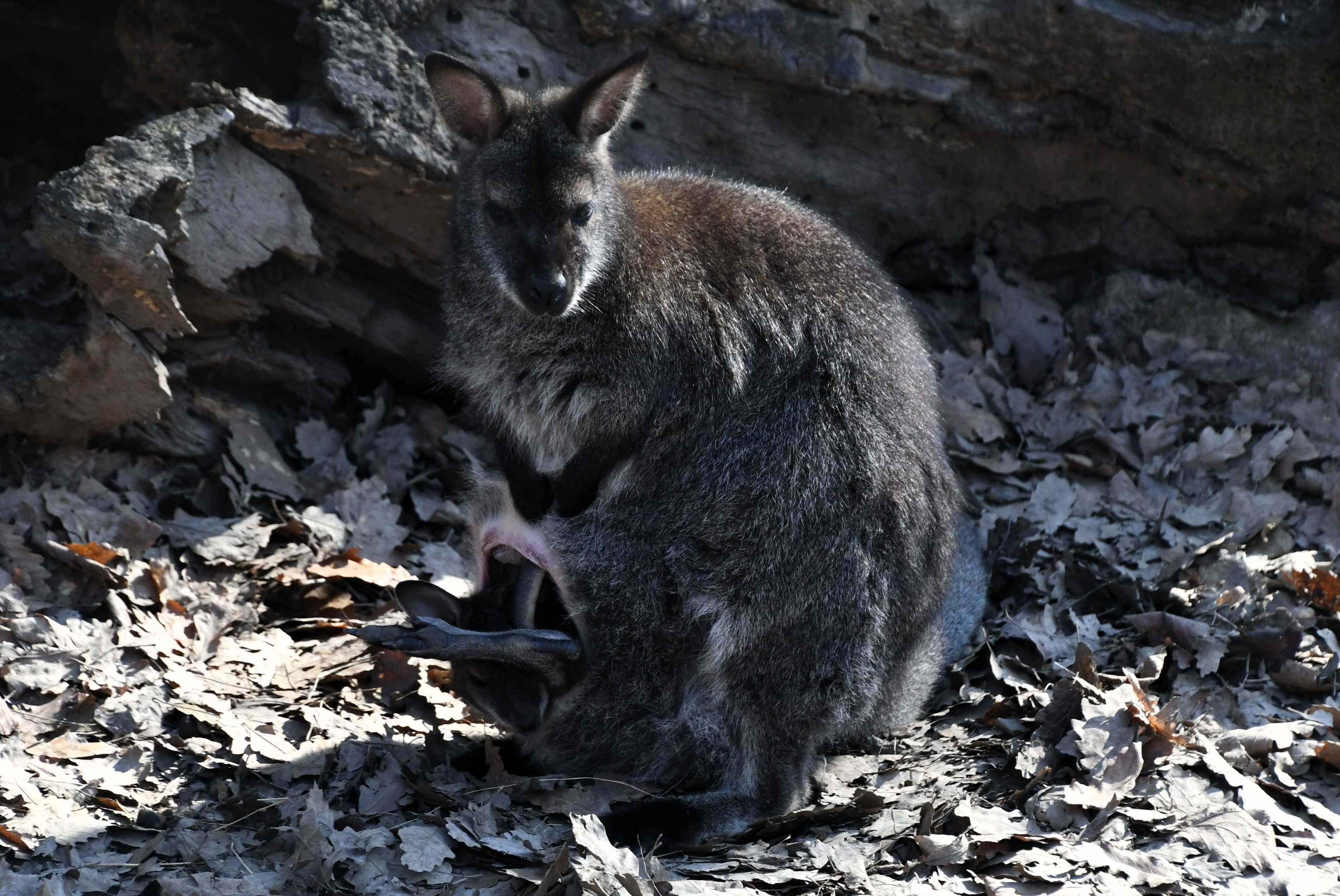 A jó idő végre előcsalogatta a kis Bennett-kengurukat az erszény biztonságából. A kíváncsi apróságok egyre gyakrabban dugják ki a fejüket, hogy felfedezzék a világot – és hamarosan elő is jönnek az erszényből.