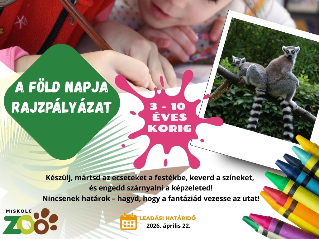 A Miskolci Állatkert rajzpályázatot hirdet a Föld napja alkalmából óvodás és általános iskola alsó tagozatos gyermekek részére, „A bolygó, ahol élünk” címmel.