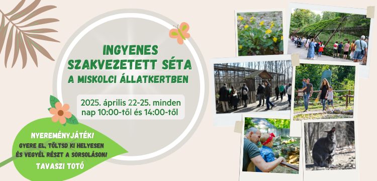 Látogassatok el hozzánk a tavaszi szünetben, április 22-25. között, töltsétek ki a pénztárnál kapott tavaszi totót és nyerjetek. A feladatlapot helyesen kitöltők között április 26-án, a Föld napi programunkon állatkerti családi belépőt sorsolunk!